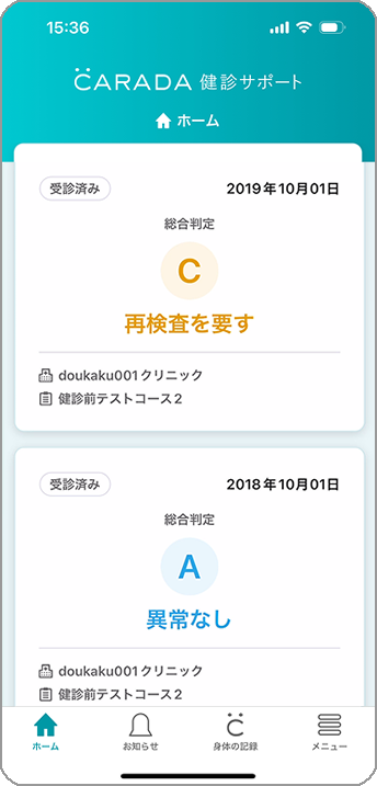 受診予定日のリマインドや、結果の返却のご連絡など、健診に関する情報がアプリの通知でお知らせしてくれるため、忘れず確認が可能です。
